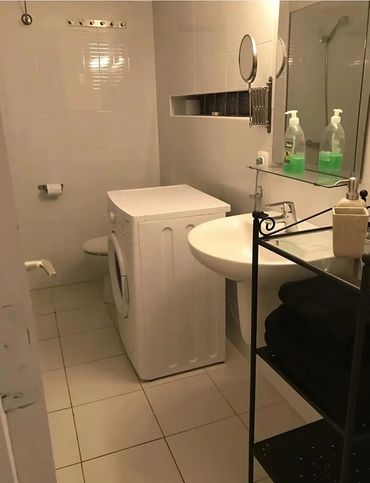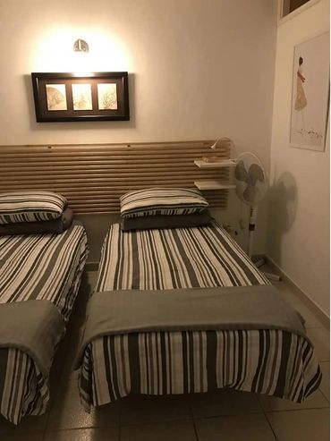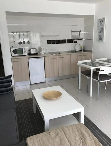 The apartment consists of a double bedroom with twin beds and built in wardrobes, a bathroom with walk in shower, washbasin and W.C. The open plan living area has a kitchen, dining table and chairs along with a sofabed.