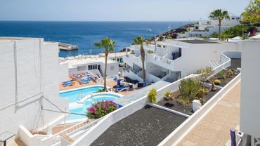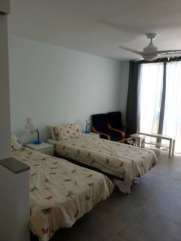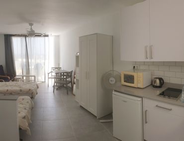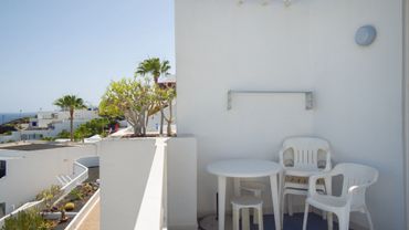 Our fantastic studio apartment has just been fully refurbished (August 2020) its south facing terrace overlooks the Old Town harbour of Puerto del Carmen, with spectacular views reaching to the coast of Fuerteventura.